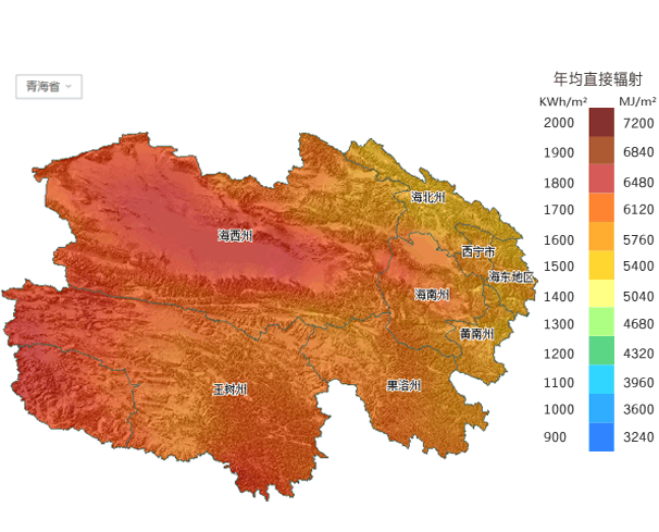 青海所属各市太阳能分布图