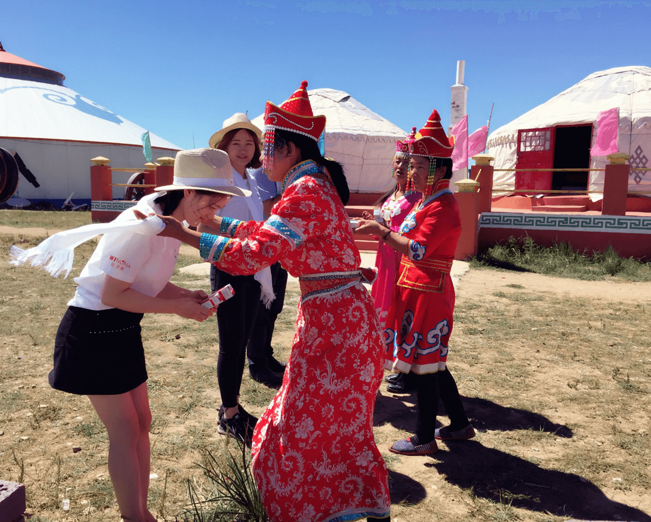 草原牧民们为薇诺娜工作人员献上洁白的哈达