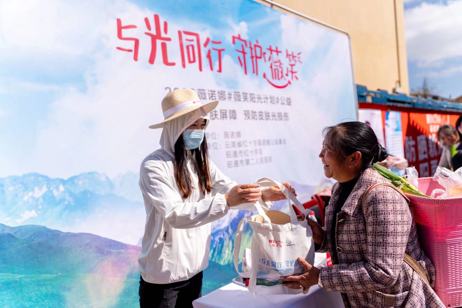 在18日—20日的三天时间里,薇诺娜“薇笑阳光计划”公益活动不仅在昭通市第二人民医院和昭阳区大山包镇集市开展了两场义诊,还深入周边地区、大山包镇中心学校、大海子黑颈鹤自然保护区,为当地群众、乡镇学校师生、自然保护区的护鹤员、护林员,科普专业防晒和皮肤护理知识,并赠送了包含敏感肌护肤套装、巴拿马草帽、防晒衣在内的“2022年薇笑阳光计划定制防晒礼包”,帮助当地居民抵御紫外线对皮肤的侵害,提升人们的防晒意识。